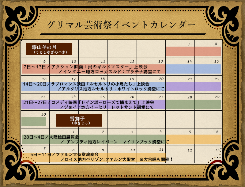 ・日程:11月14日(金)10:00 ~ 11月20日(木)23:59・場所:アルタリス地方ルセルトリ:ホワイトロック講堂にて